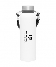 32 oz double wall 18/8 stainless steel thermal bottle with copper vacuum insulation, insulated stainless steel threaded lid, silicone ring, removable strap with buckles, removable clasps, and powder coated finish. Individual gift box. Hand wash recommended. Do not microwave. Complies with FDA, Prop 65. 11" H x 3.1875" W