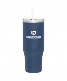 40 oz double wall 18/8 stainless steel thermal tumbler with copper vacuum insulation, stainless steel rim, dual-purpose push-on clear lid, matching sliding closure, flexible wide silicone straw, and powder coated finish