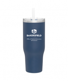40 oz double wall 18/8 stainless steel thermal tumbler with copper vacuum insulation, stainless steel rim, dual-purpose push-on clear lid, matching sliding closure, flexible wide silicone straw, and powder coated finish