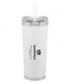 24 oz double wall 18/8 stainless steel thermal tumbler with copper vacuum insulation, stainless steel rim and base, threaded Eastman Tritan lid, snap closure, straw opening, and flexible wide silicone straw.